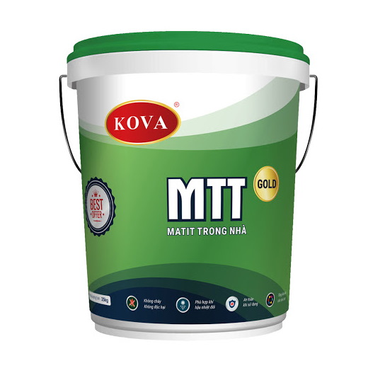 MATIT KOVA: Là loại Matit thông dụng để làm phẳng tường nhà trong nhà (MTT-Gold). Ngoài trời (MTN-Gold). Đã được nhiệt đới hóa hoàn toàn, sử dụng bả lót nhằm làm phẳng tường trước khi phủ sơn.