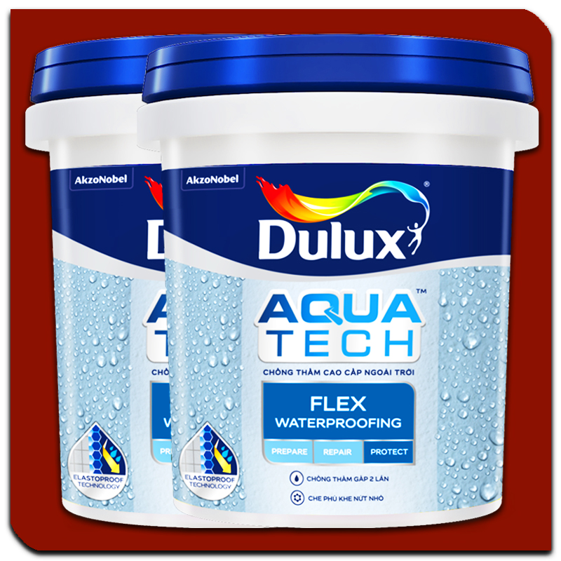 Chống thấm Dulux Aquatech Flex Waterproofing là chất chống thấm siêu cao cấp. Dành cho tường đứng ngoại thất. Sản phẩm không cần pha với xi măng. Có hai màu xám đậm và xám nhạt. Công nghệ Elastoproof độc đáo cho khả năng chống thấm siêu việt. Với màng sơn dầy, đanh chắc. Có khả năng co giãn giúp che phủ các vết rạn nứt nhỏ. Ngăn chặn nước và hơi ẩm thấm qua bề mặt. Bảo vệ ngôi nhà bền đẹp dài lâu